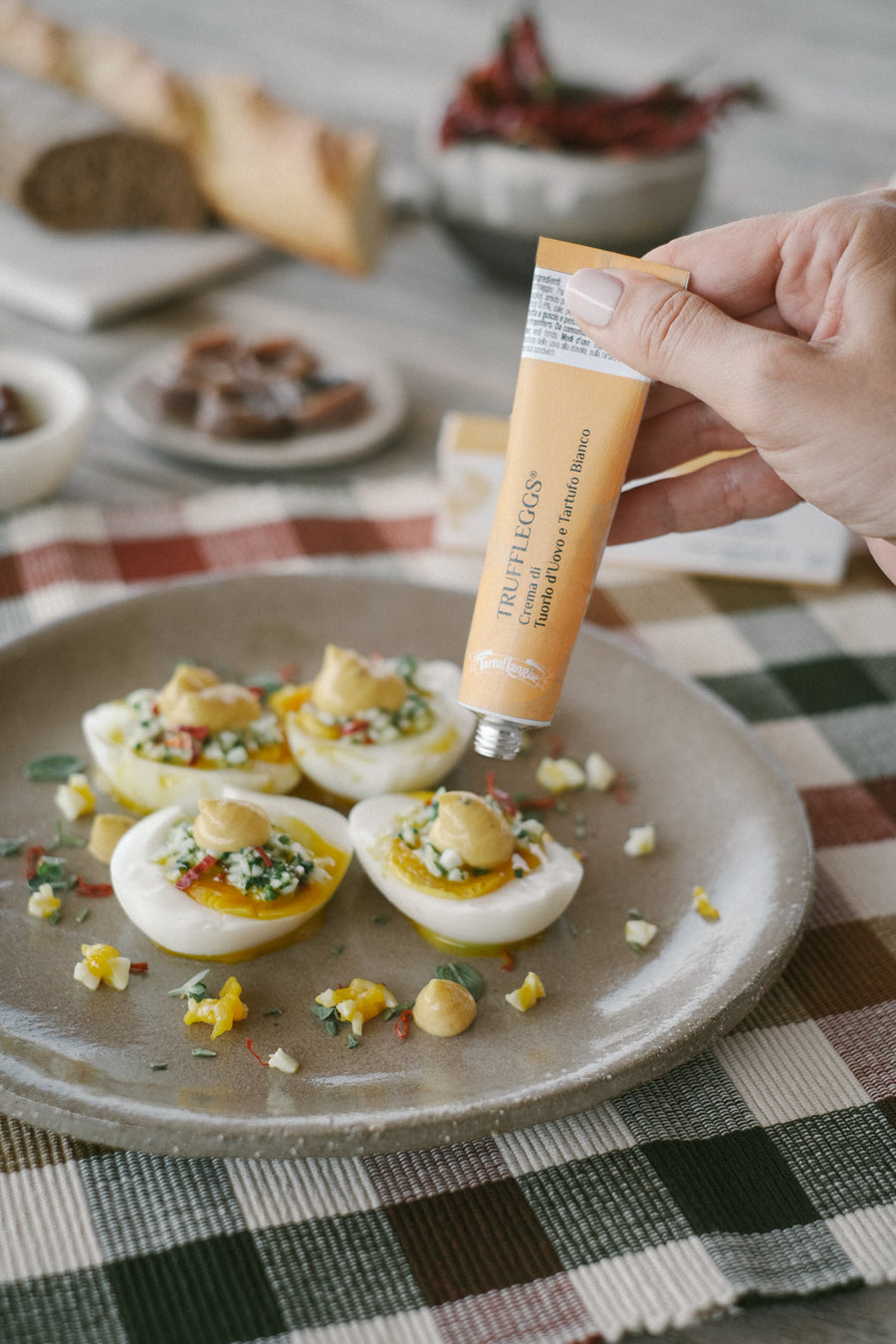 The classic egg and truffle combination in a spreadable cream with a pleasant texture.